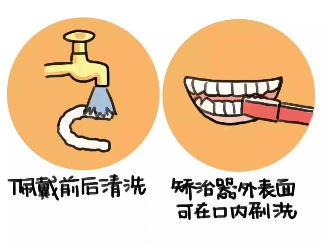 1、每次佩戴前、后请清洗矫治器,可用软毛牙刷在流动水下清洗,在早上起床和晚上睡前,可加少量牙膏清洁,减少牙套的异味。(常温水即可,不宜用太烫或太冷的水)。